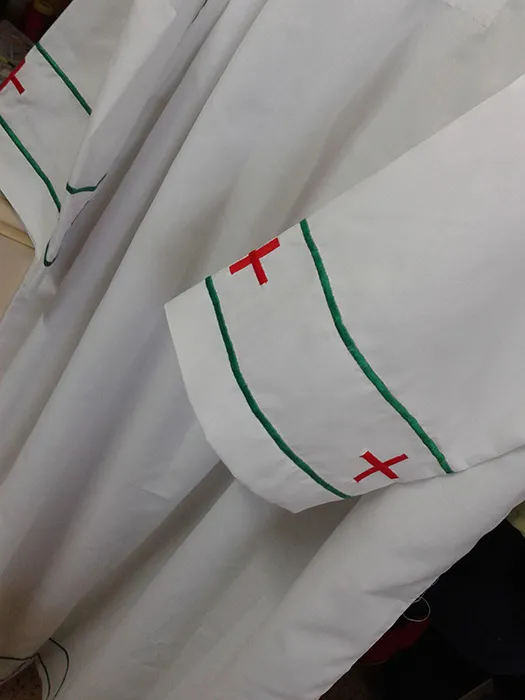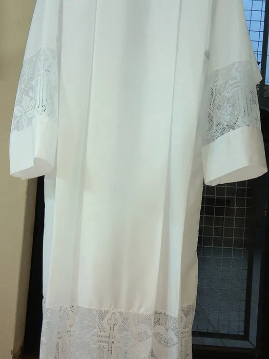 Los lienzos de altar se confeccionan con tela de hilo puro; con dobladillo especial, hecho a mano; y con puntillas, para días de Fiesta.