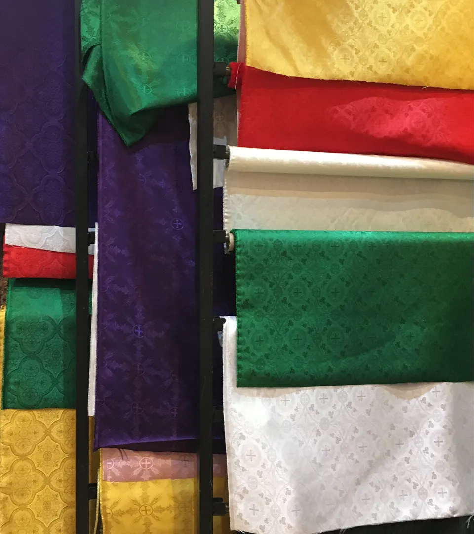 Los lienzos de altar se confeccionan con tela de hilo puro; con dobladillo especial, hecho a mano; y con puntillas, para días de Fiesta.