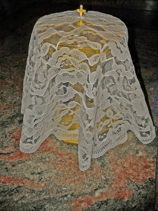 Los lienzos de altar se confeccionan con tela de hilo puro; con dobladillo especial, hecho a mano; y con puntillas, para días de Fiesta.
