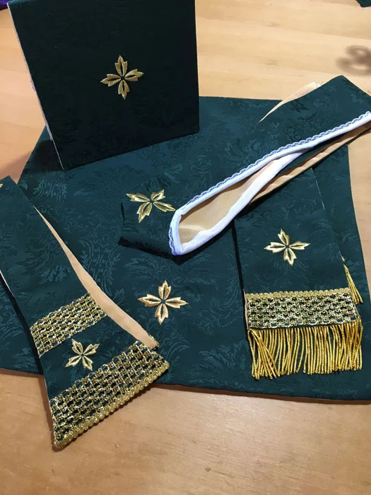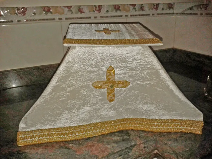 Los lienzos de altar se confeccionan con tela de hilo puro; con dobladillo especial, hecho a mano; y con puntillas, para días de Fiesta.