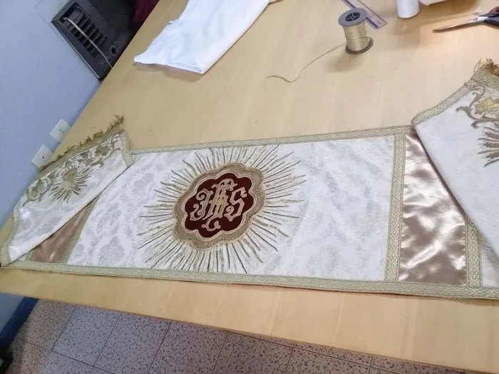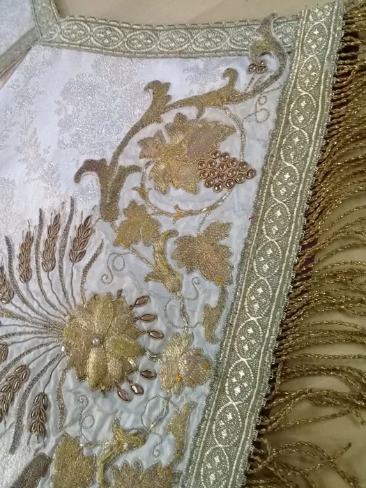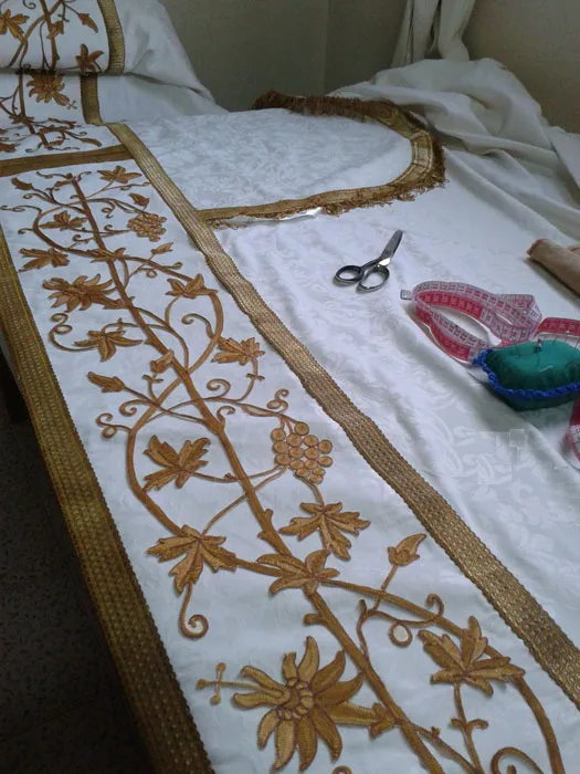 Los lienzos de altar se confeccionan con tela de hilo puro; con dobladillo especial, hecho a mano; y con puntillas, para días de Fiesta.